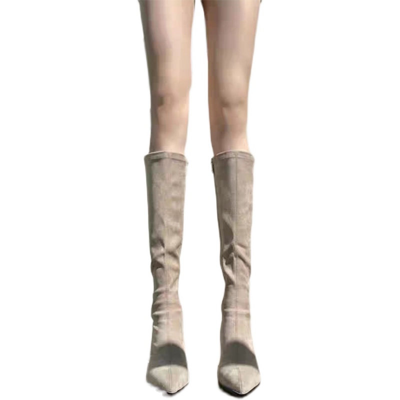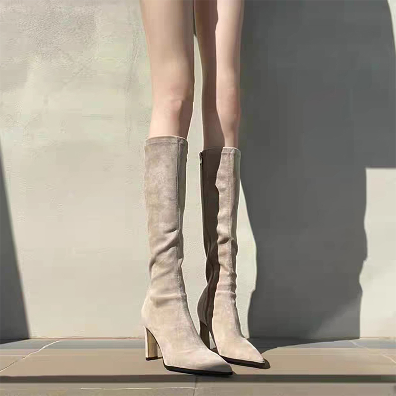 The owner recommends nude suede girls all-match women's boots pointed toe but knee high heels women's boots