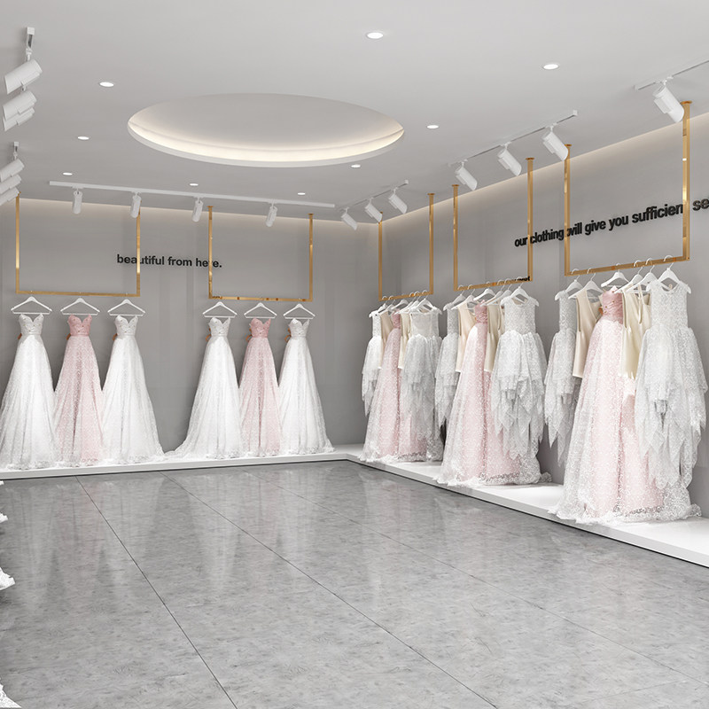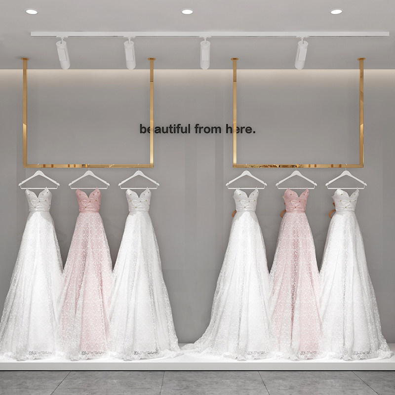 Stainless steel wedding shop special dress hanging hanger creative wall hanging ceiling hanging rod U-shaped women's clothes hanger