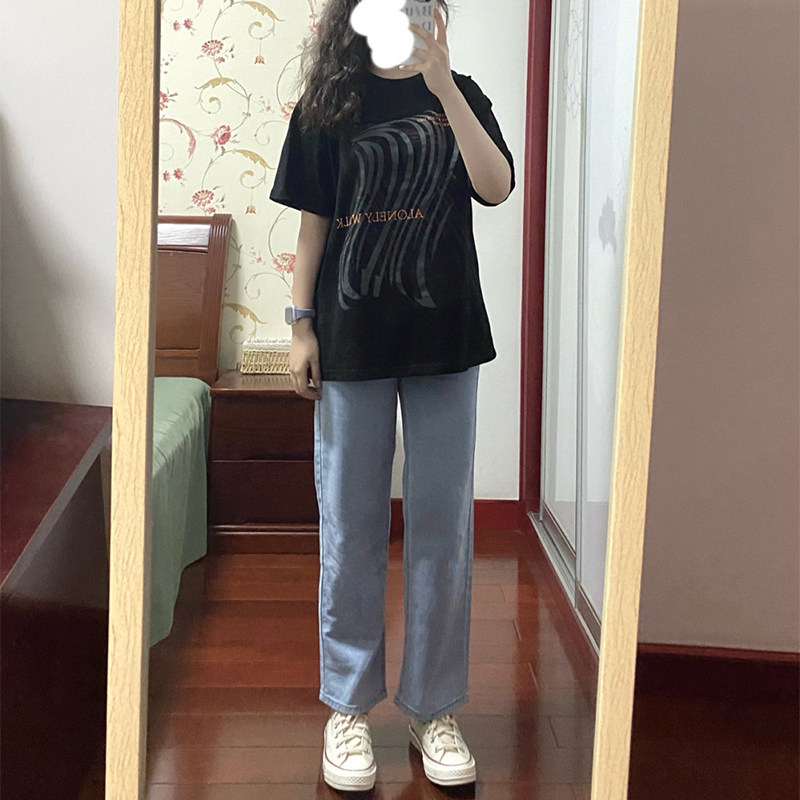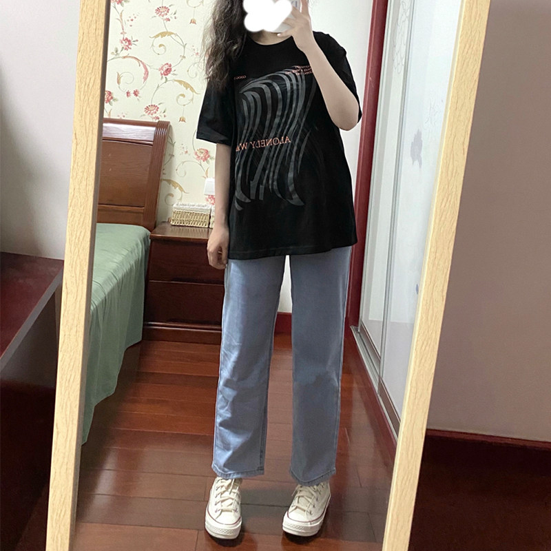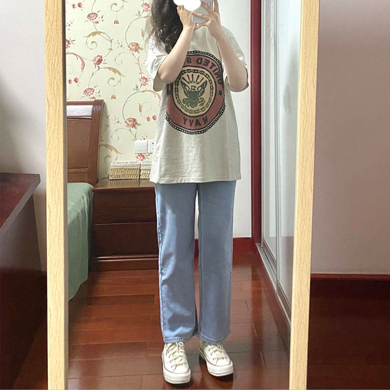 Straight-leg jeans women's small autumn and winter light-colored high-waisted wide pants retro loose pear-shaped figure sweet and cool pants