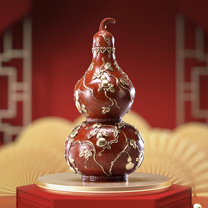 Zhu Bingren Copper Fulu Bandai Red Gourd Home Decoration Copper Handicraft Desk Decoration Decoration