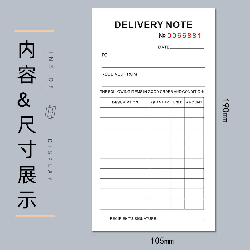 Full English delivery note DELIVERYNOTE English version of the bill double triple foreign reimbursement documents can be customized