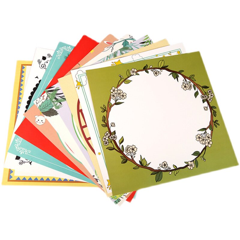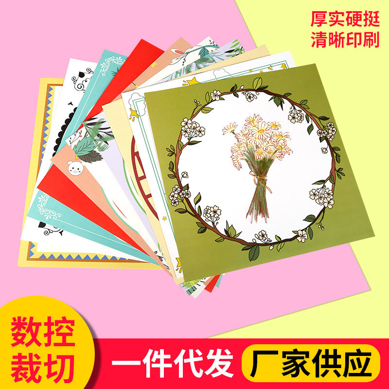 China Wind Framed Rims Colored Lace Cardboard Square Round Face Hard Cardboard Water Powder Sketching Colored Pencil Drawing Paper 33cm