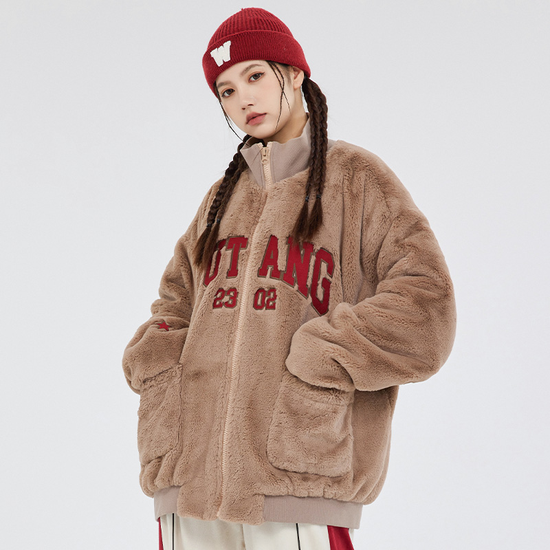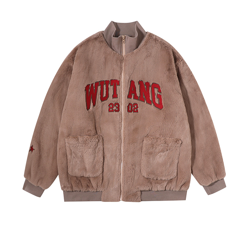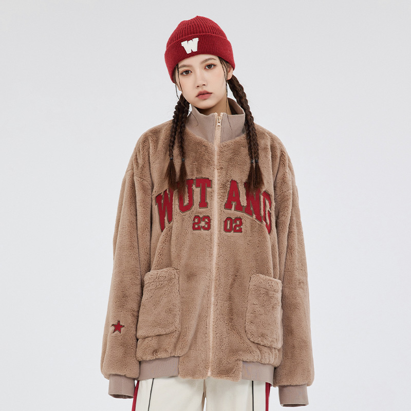 (WUT Official Store) Winter Series Original Design Brown Soft Plush Thick Hip Hop Retro Jacket