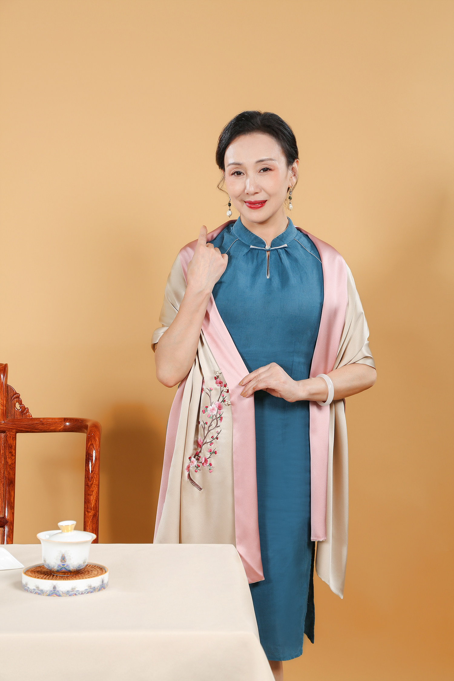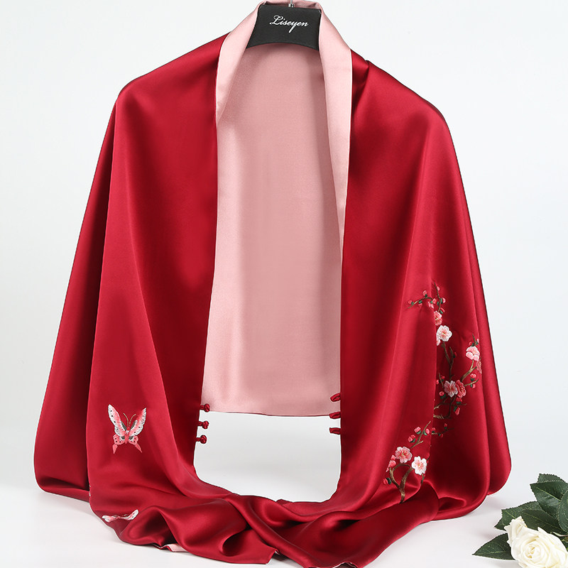 Hangzhou Silk Real Silk Mulberry Silk Double Face Scarf Tray Button Shawl Buttoning Cloak Dress Outside With a Mom's Shoulder Cape