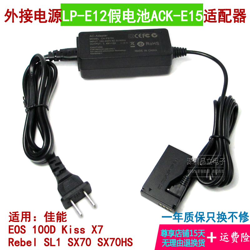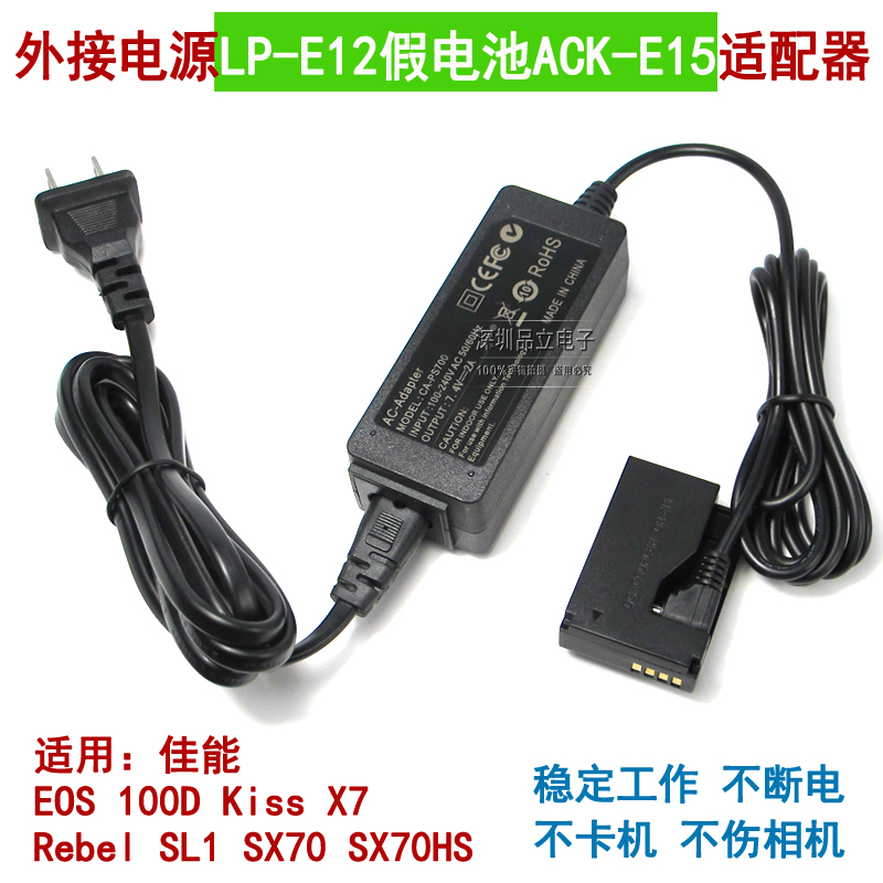 LPE12 fake battery canon EOS100D kiss7 SX70 external power adapter Rebel SL1 direct charge