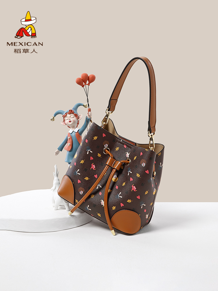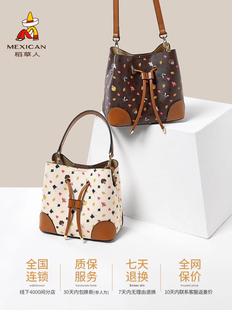 Scarecrow official 2022 autumn and winter new bag women's fashion contrast color drawstring portable messenger bag bucket bag