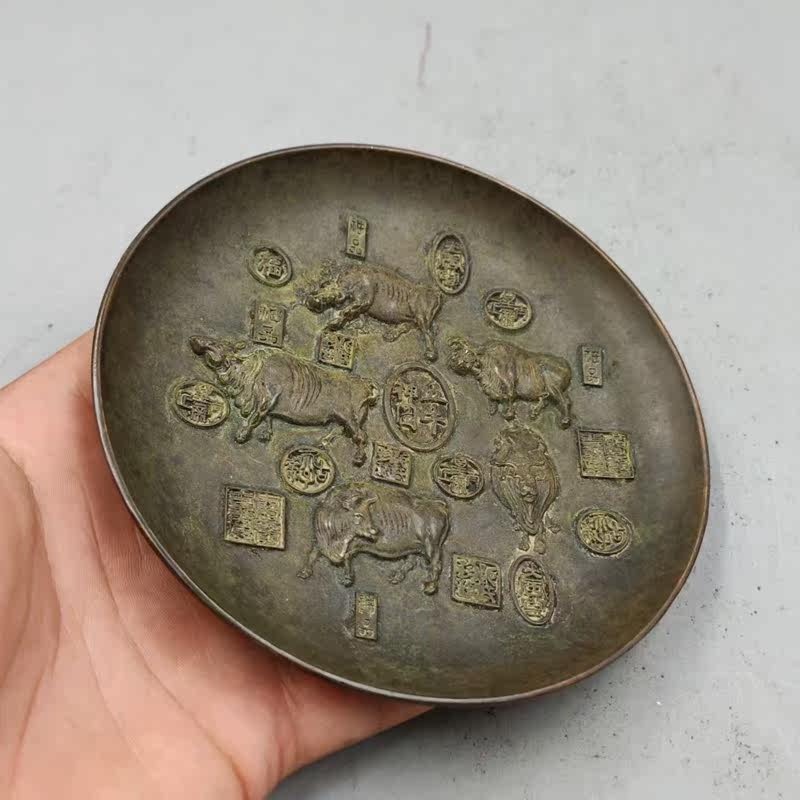 Antique miscellaneous plate Five bull dish dish dish tray insulation pad home copper process decoration