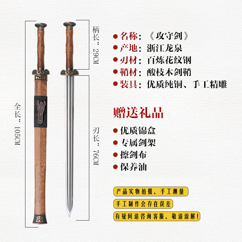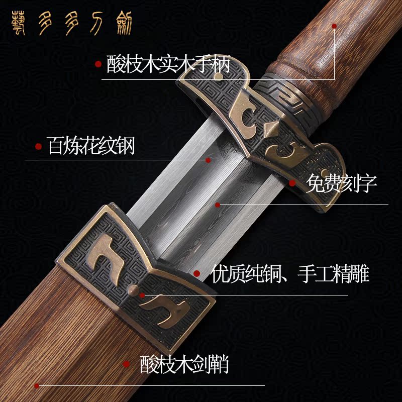 Longquan one eight-faced Han sword town house sword long pattern steel sword self-defense hard sword cold weapon unedged