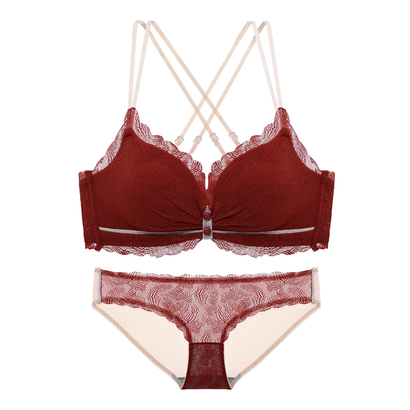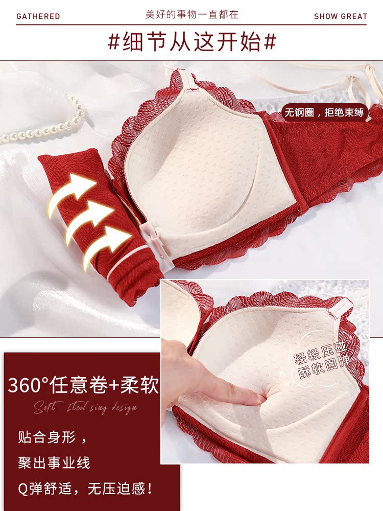 Red underwear suit female rabbit year gathered small chest sexy married pure bride without steel circle bras