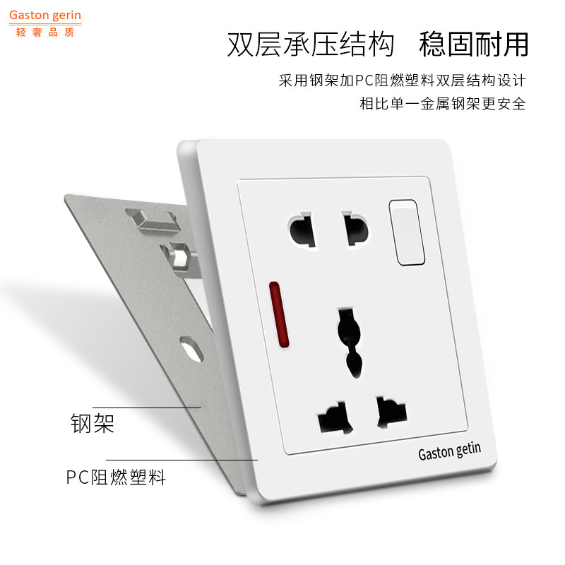 Type 86 hidden socket one open five hole with indicator light multi-function socket Hong Kong type multi-five hole universal plug switch