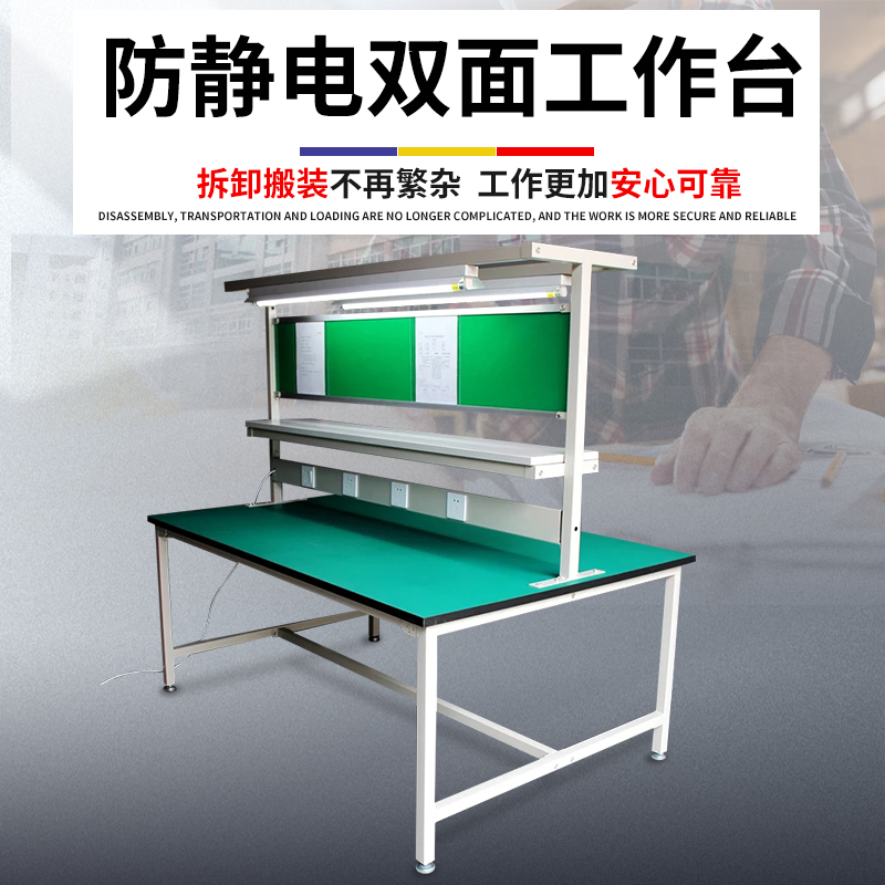 Anti-static workbench table with lights double-layer assembly line sorting inspection maintenance experiment double-sided workshop console