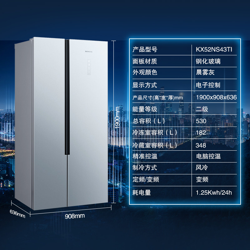 SIEMENS Siemens 530 litres open double door ultra-thin air-cooled frost-variable frequency refrigerator KX52NS43TI