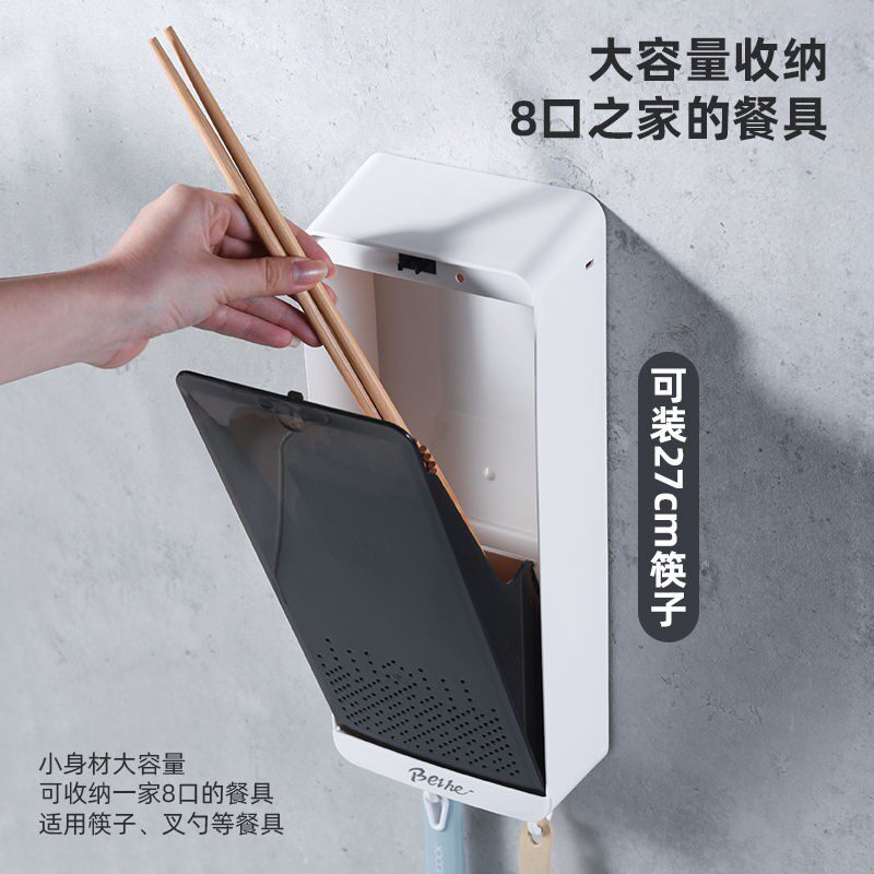 Wall-mounted chopsticks tube asphalt basket rack-free punching housekitchen with dust-proof chopsticks collection box