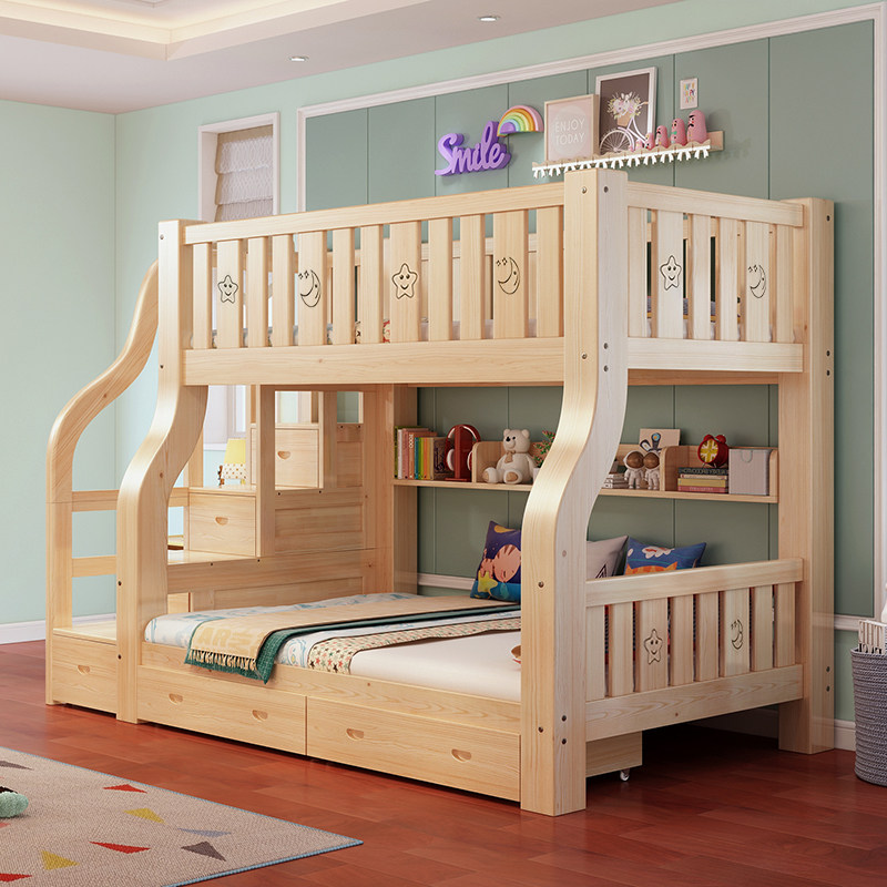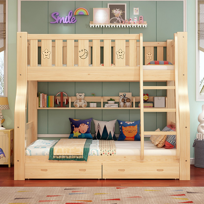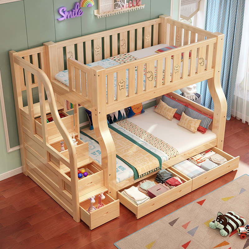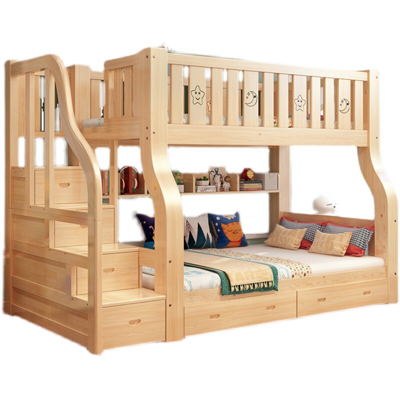 Full solid wood upper and lower bed double multifunction high and low bed Two small family type up and down bunk bed Children's bed primary and secondary bed