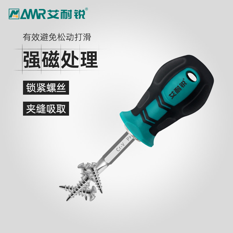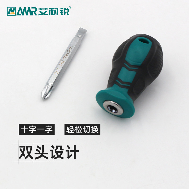 Aina sharp radish head screwdriver strong magnetic short screwdriver short handle screw batch ultra-short cross word dual-purpose screwdriver