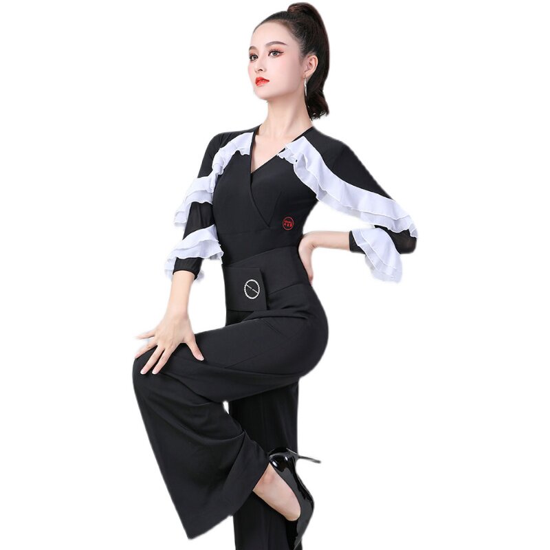 Dambao Roo High-end Latin Dance Outfit 2021 New Fashion National Mark Dance Blouse Women's Lotus Leaf Side Dancing Clothes