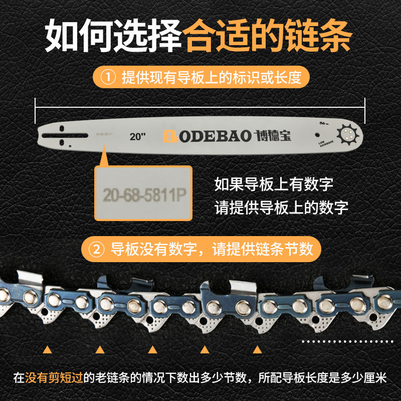 18 16-inch STIHL chain (36 knives 72 knots) 18 16-inch tiger head chain (36 knives 72 knives) 20-inch STIHL chain (38 knives 76 knives) 20-inch tiger head chain