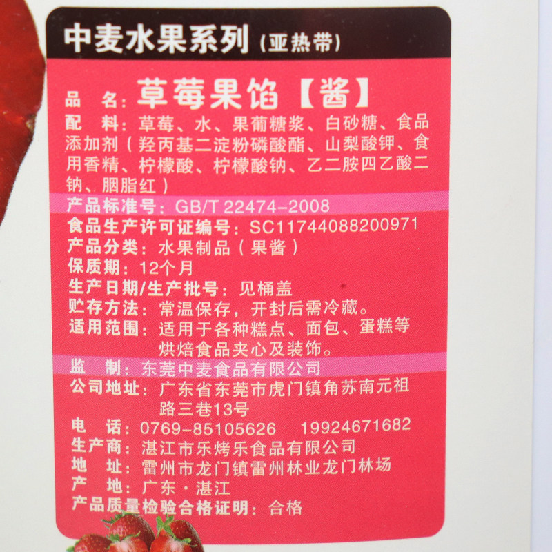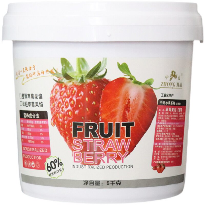 Medium Wheat Whole Strawberry Fruit Filling 5kg Jam Fruit Furry Baked Commercial Drinks Bread Cake Sandwich Decoration