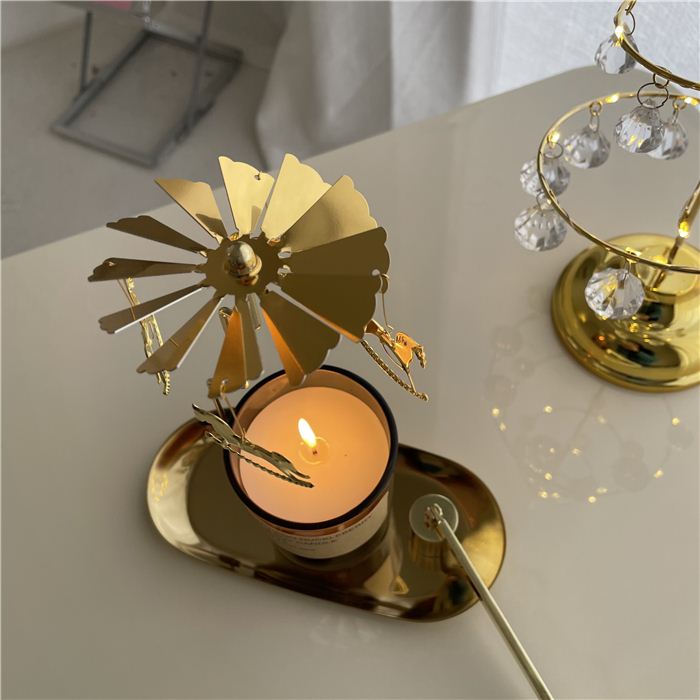 Rotating Candle Holder Candle Light Dinner Atmosphere Arrangement Atmosphere Disposition Ambience French Style Retro High-end Net Red Suit Horse Race Lights
