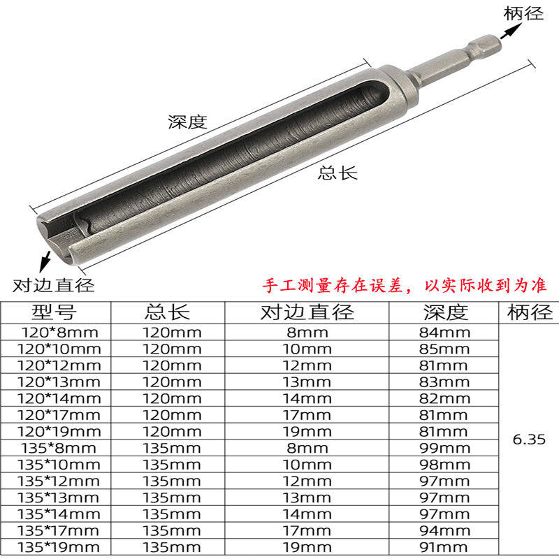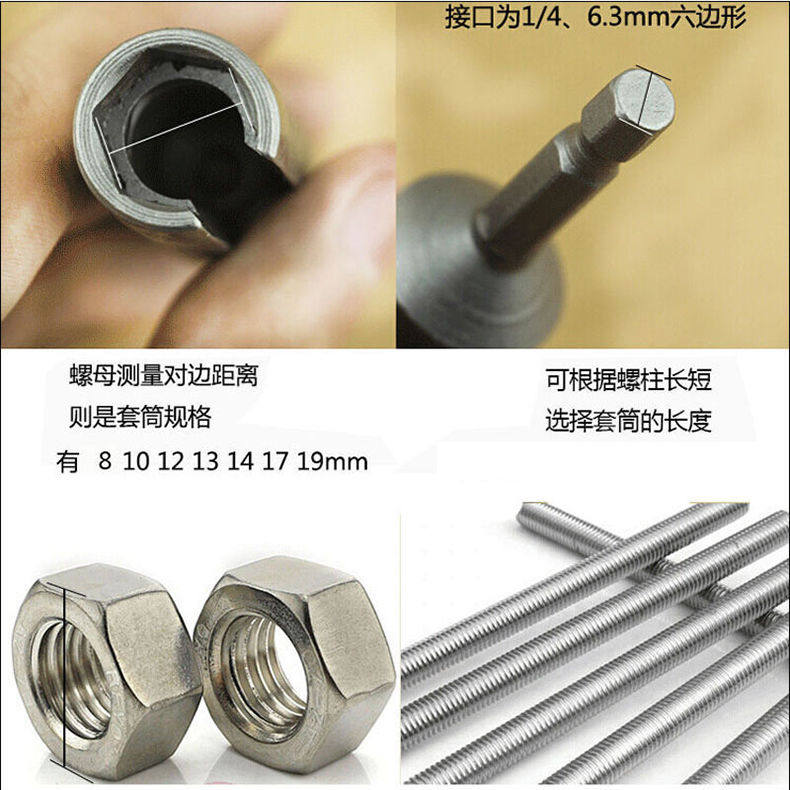Lengthened deepening opening inner hexagonal sleeve battery 6 35 hexagonal shank screw nut suspended ceiling electric drill pneumatic screwdriver sleeve