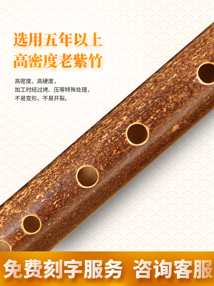 Crossblow Purple Bamboo Bau Musical Instrument G Tune F Tune Adult Children Elementary School Entrance