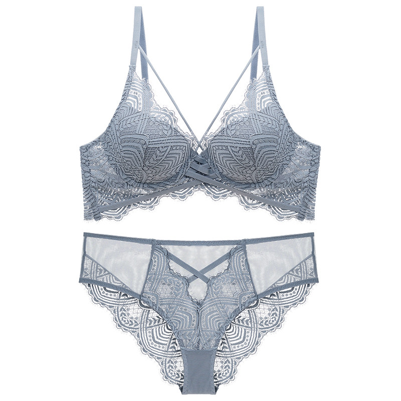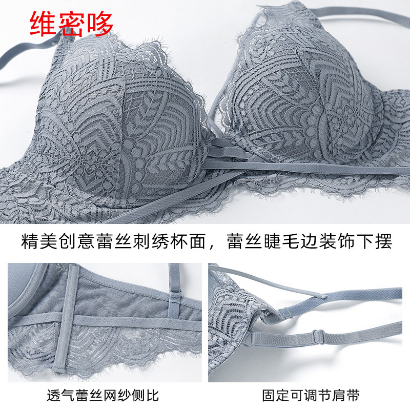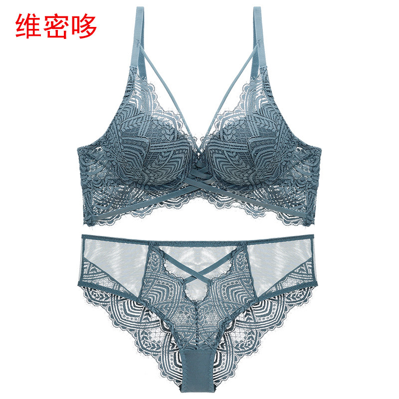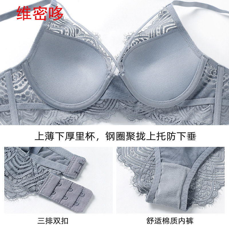 Wei Mi duo Europe and the United States sexy deep v strap beauty bra lace underwear women's complete set of upper thin and lower thick gathered bra