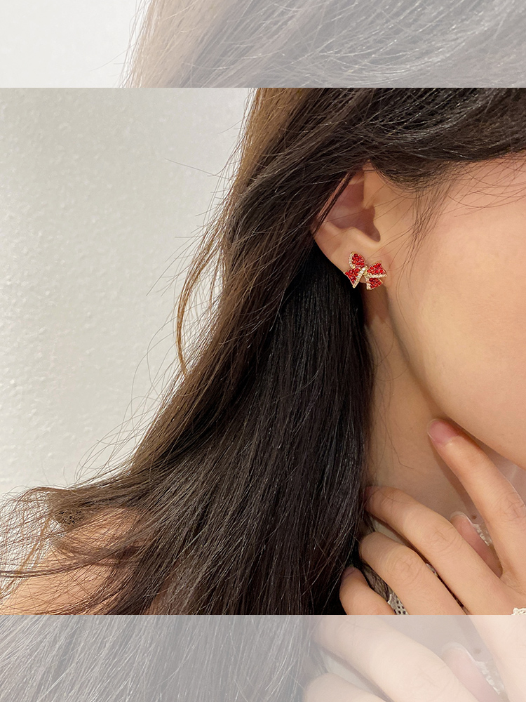 Earrings suitable for Chinese New Year women's 2021 new trendy light luxury high-end stud earrings red festive bow earrings