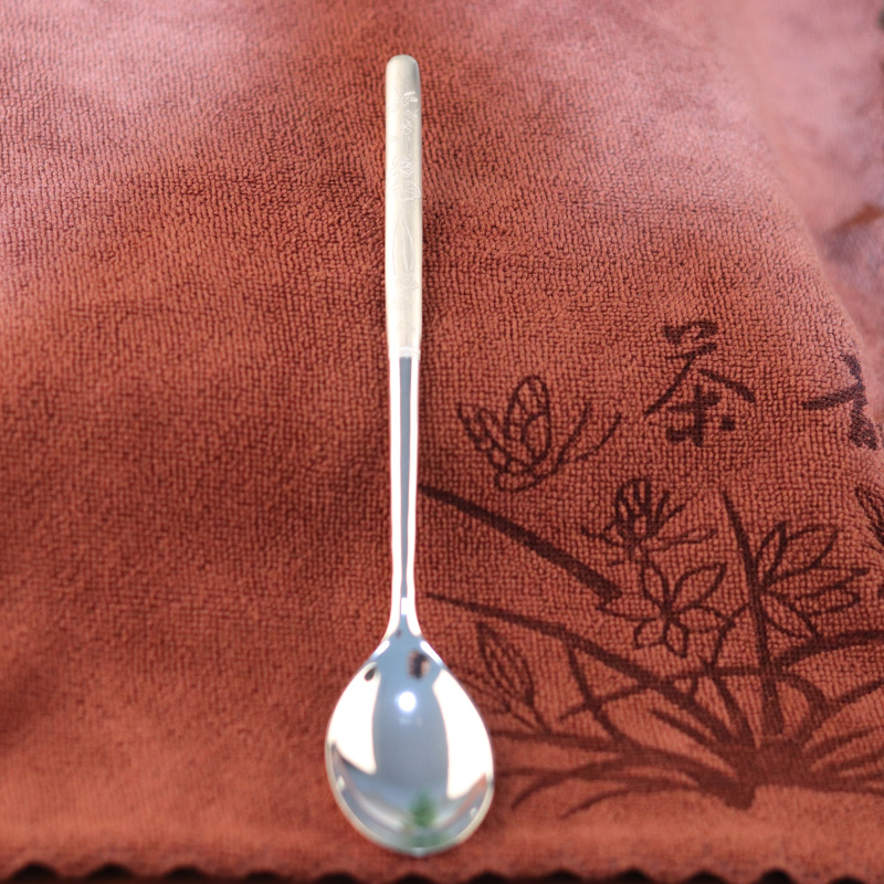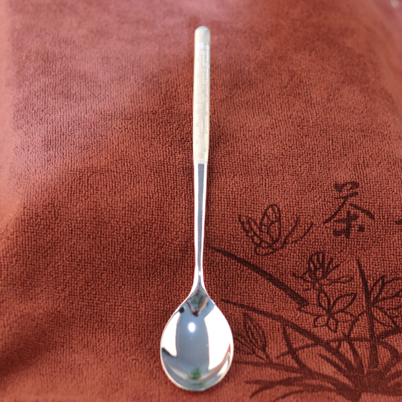 Pure silver 999 silver spoon for home long handle child spoon glossy silver soup spoon silver cutlery coffee spoon spoon spoon