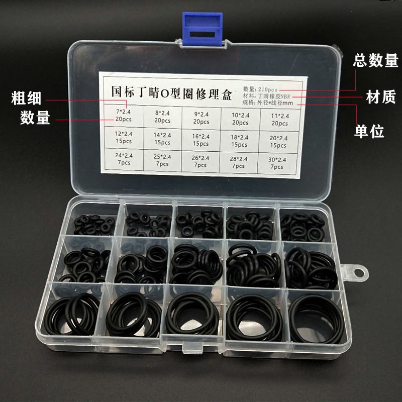 Wire diameter 2 4mm—O-ring repair box, total quantity 210 pieces