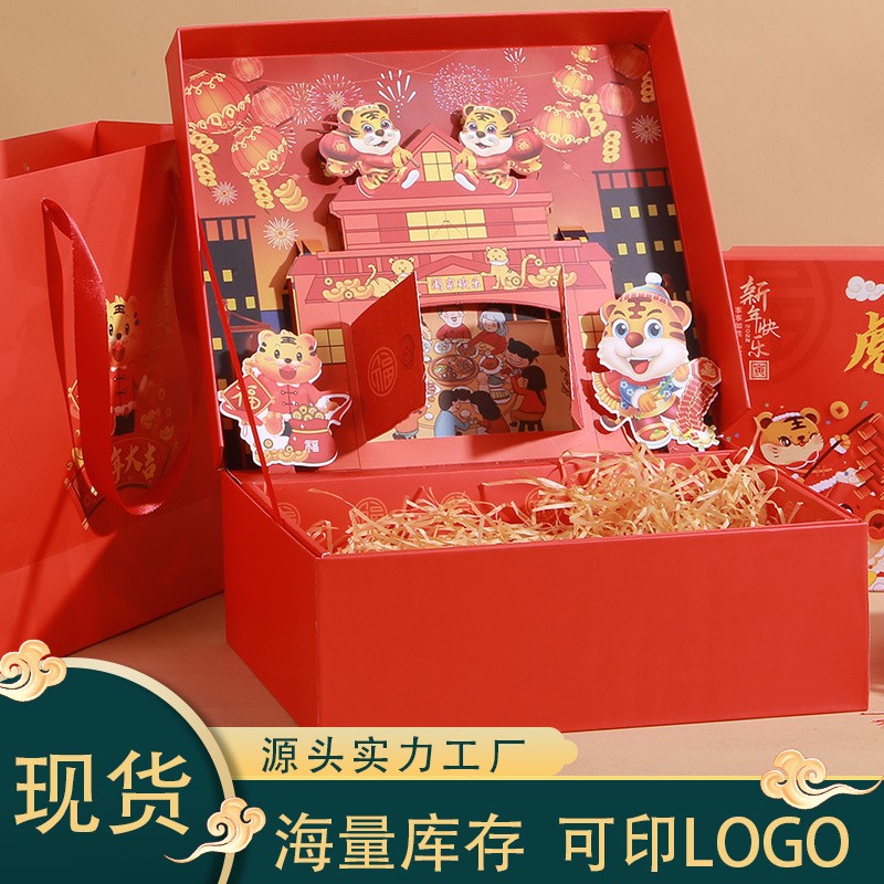 Year of Tiger Outer Packaging Gift Customization Spring Festival New Year Gift Box Packaging 2022 Guochao Candy New Year Gift Box Empty Box