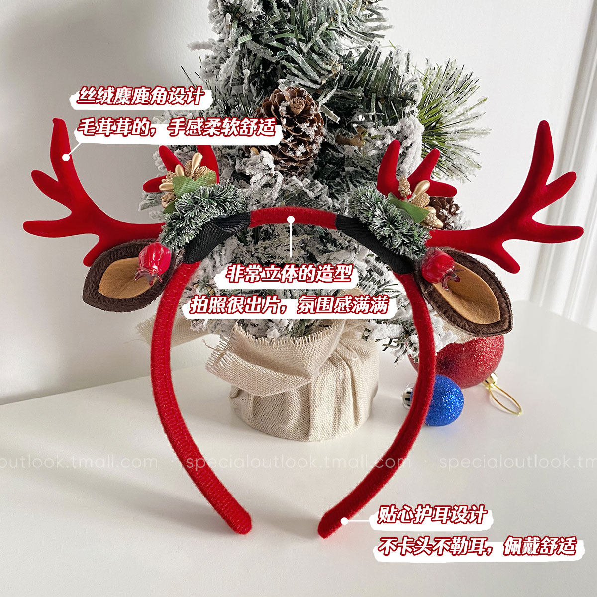 Deer Corner Headwear Christmas Decorations Hair Stirrings Women 2023 New Autumn/Winter Hair Clip Hair Accessories Plush Head Stirrup Red Card-Taobao