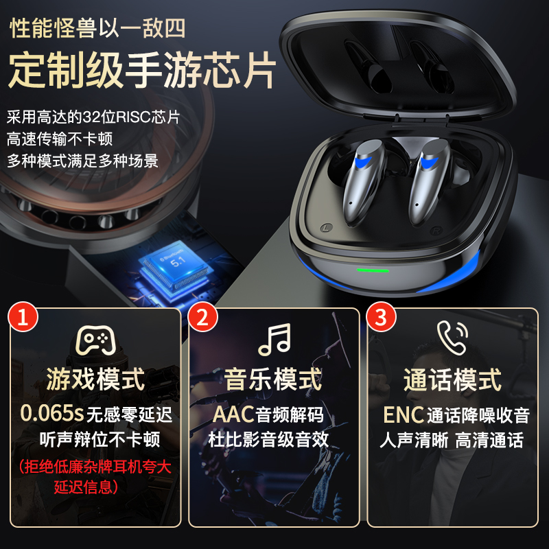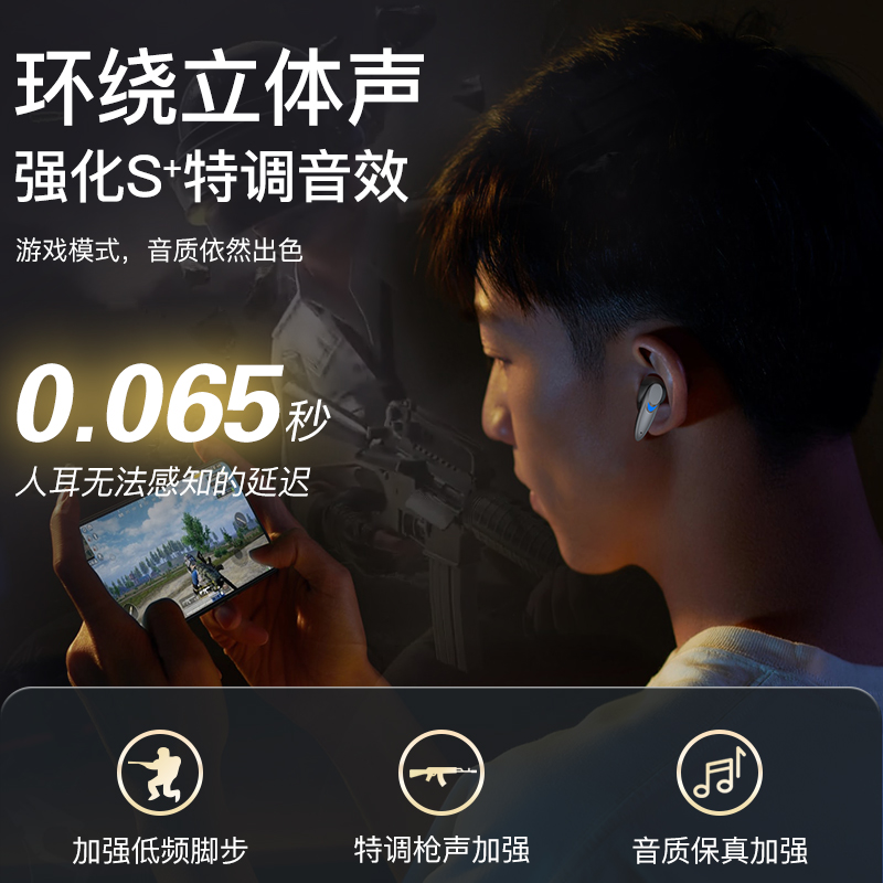Electric race Game No Delay Private Lanserton Wireless Bluetooth Earphones 2021 New In-ear High-end Men's Noise Reduction Eat Chicken Black Tech High Face Value Music Apply Huawei Black Shark Iqoo