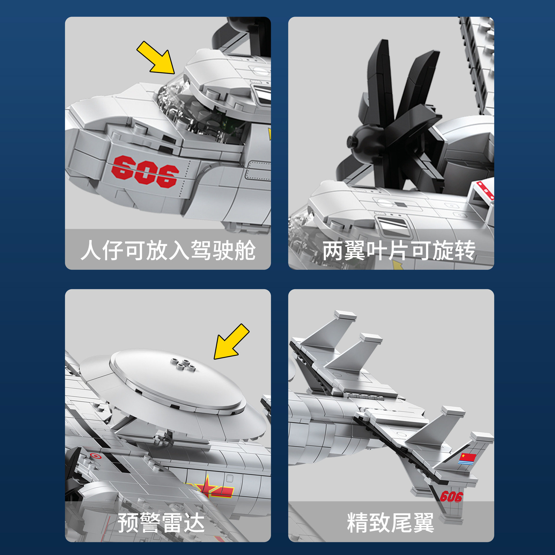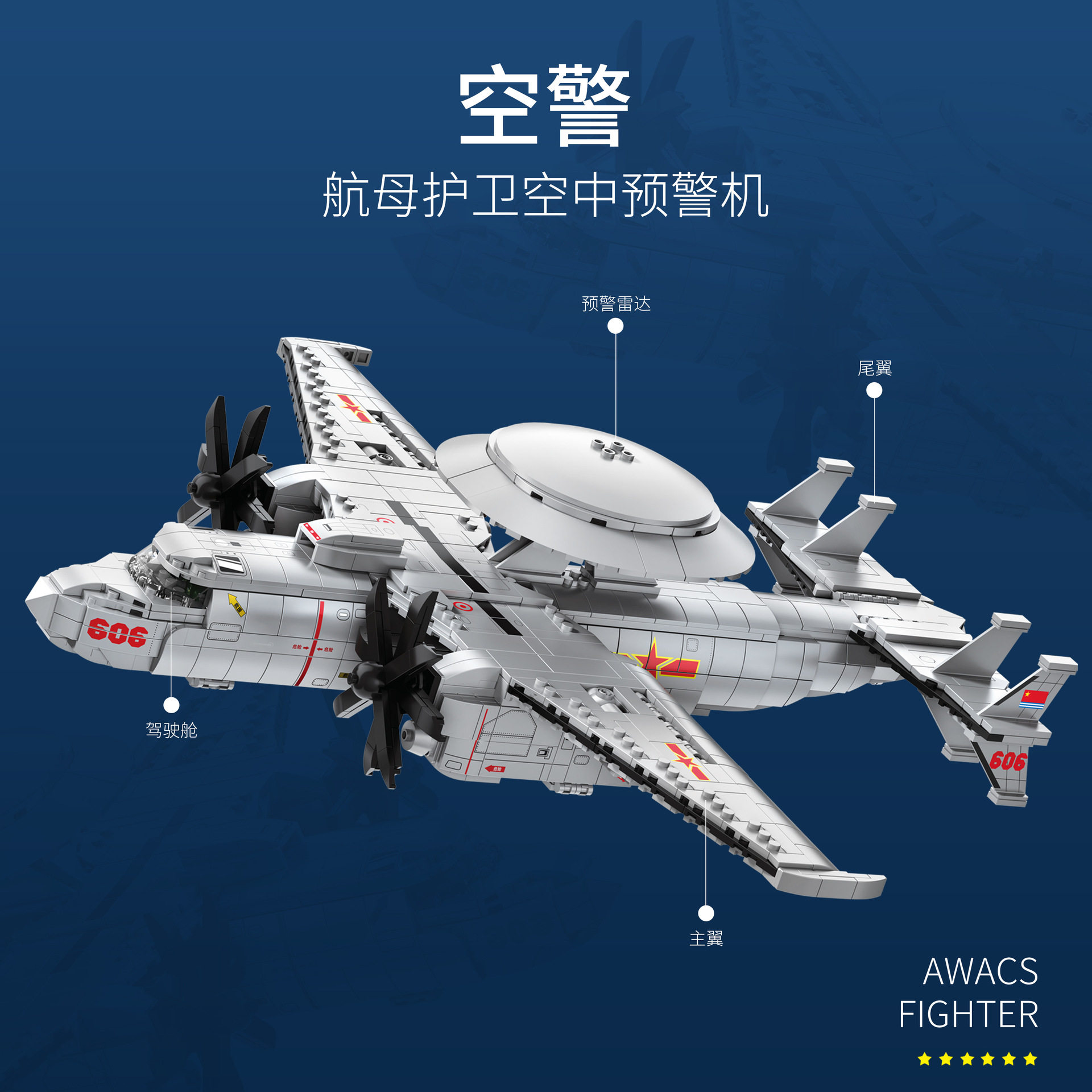 Poly Air 88015 Air Marshals 600 Air Escort Pre-Alarm Machine Boys Assembled Small Grain Aircraft Model Building Blocks Toys