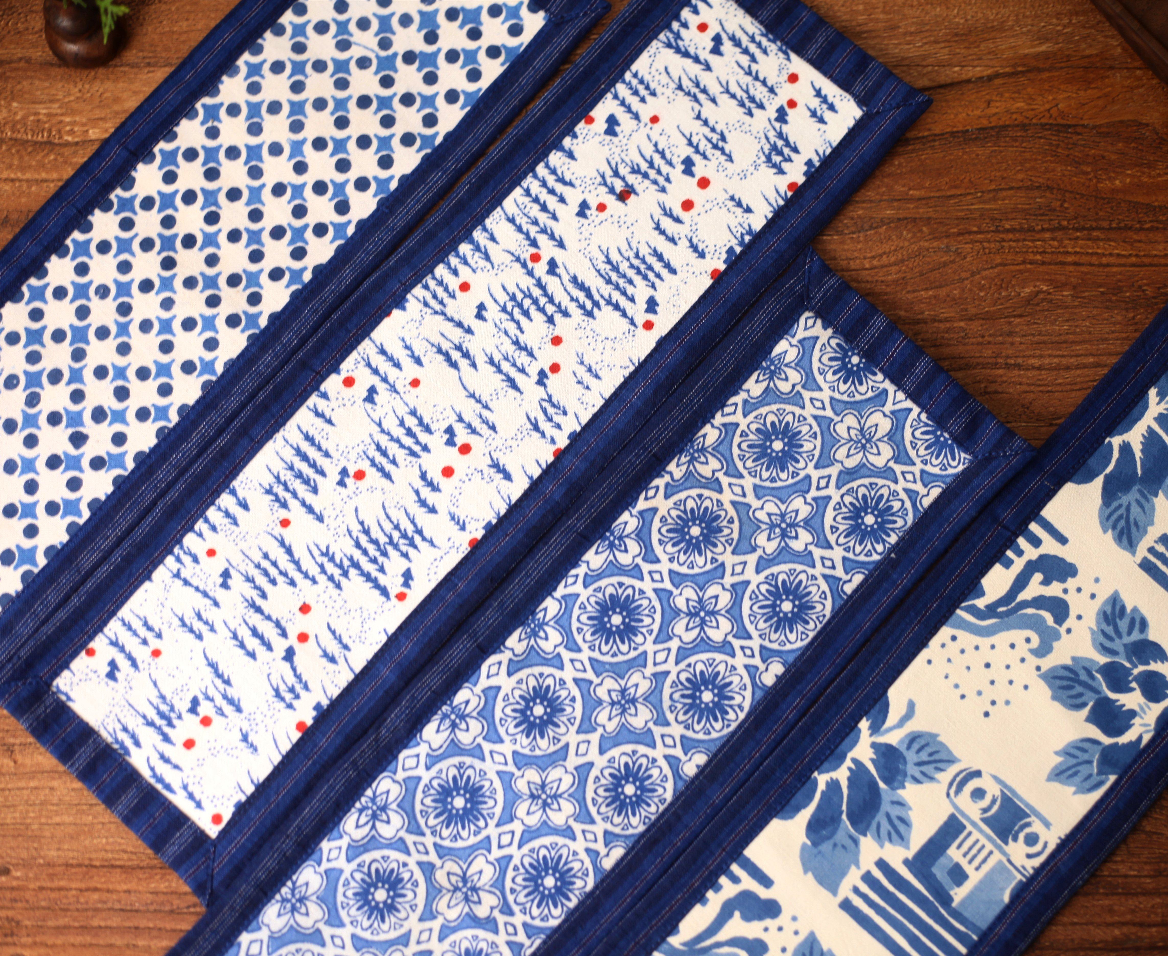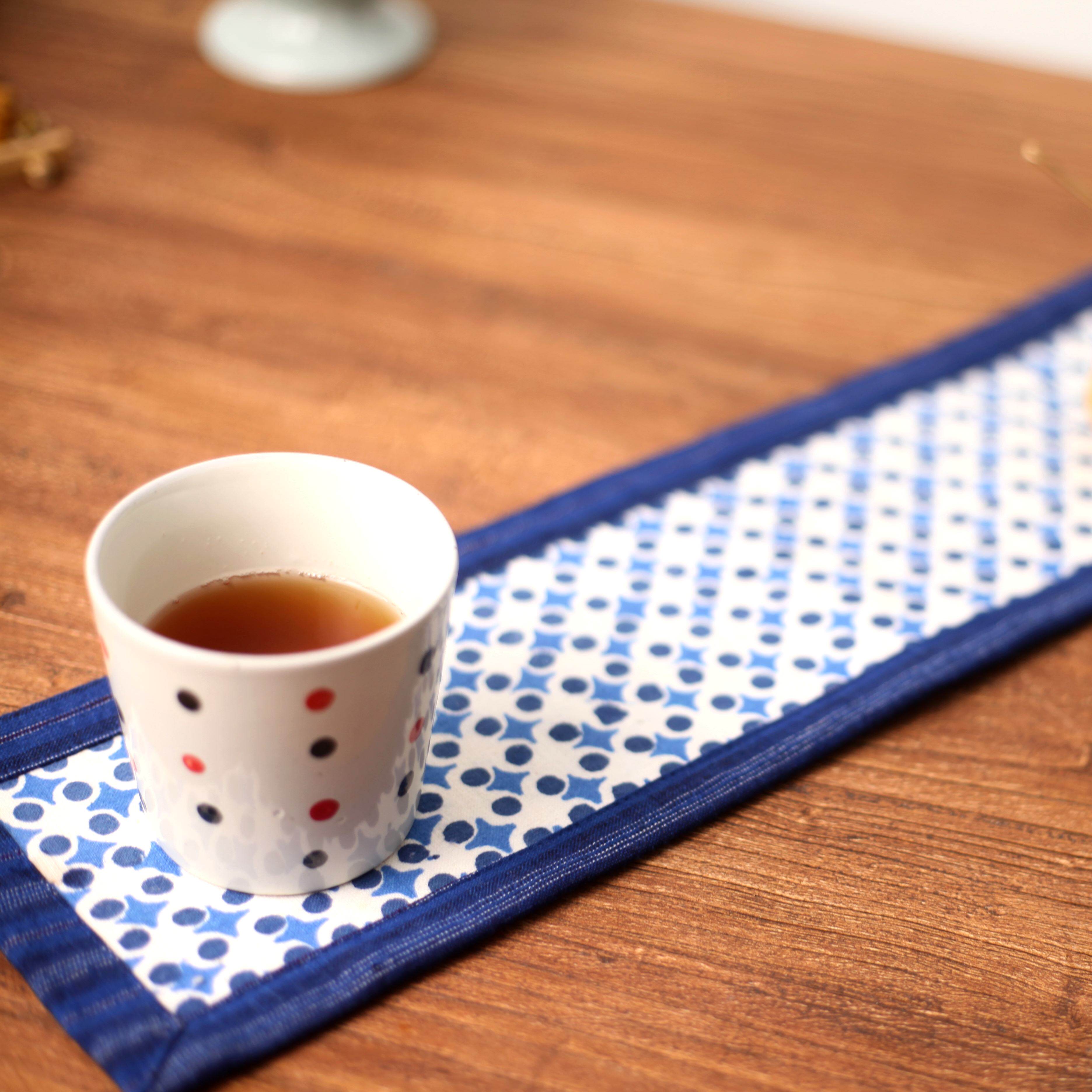 Tea table pure cotton hand-woven old coarse cloth old printed cloth double-layer quilted Chinese style living room tea space decoration