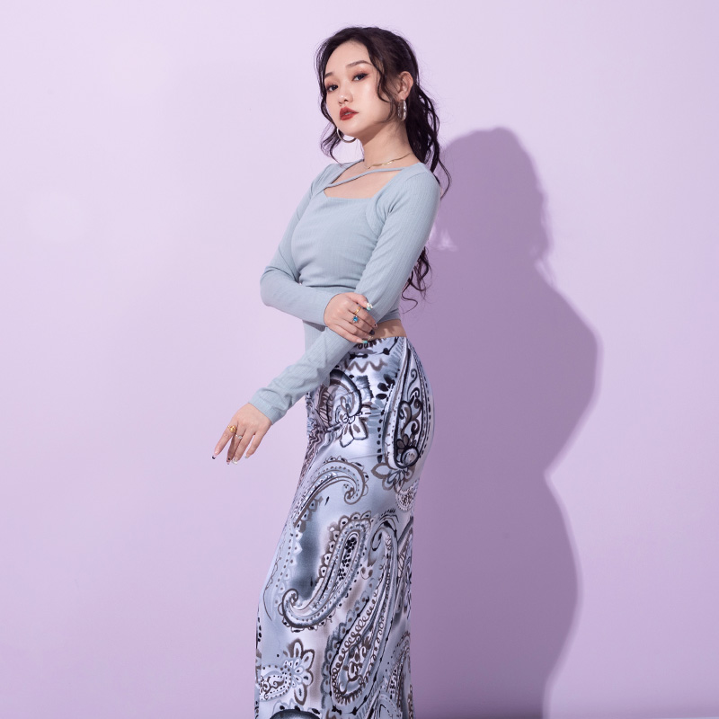 Belly Leather Dance Dress Suit Blouse Blouses 2022 Spring Autumn New Training Clothing Printed High-end Sexy Long Dress