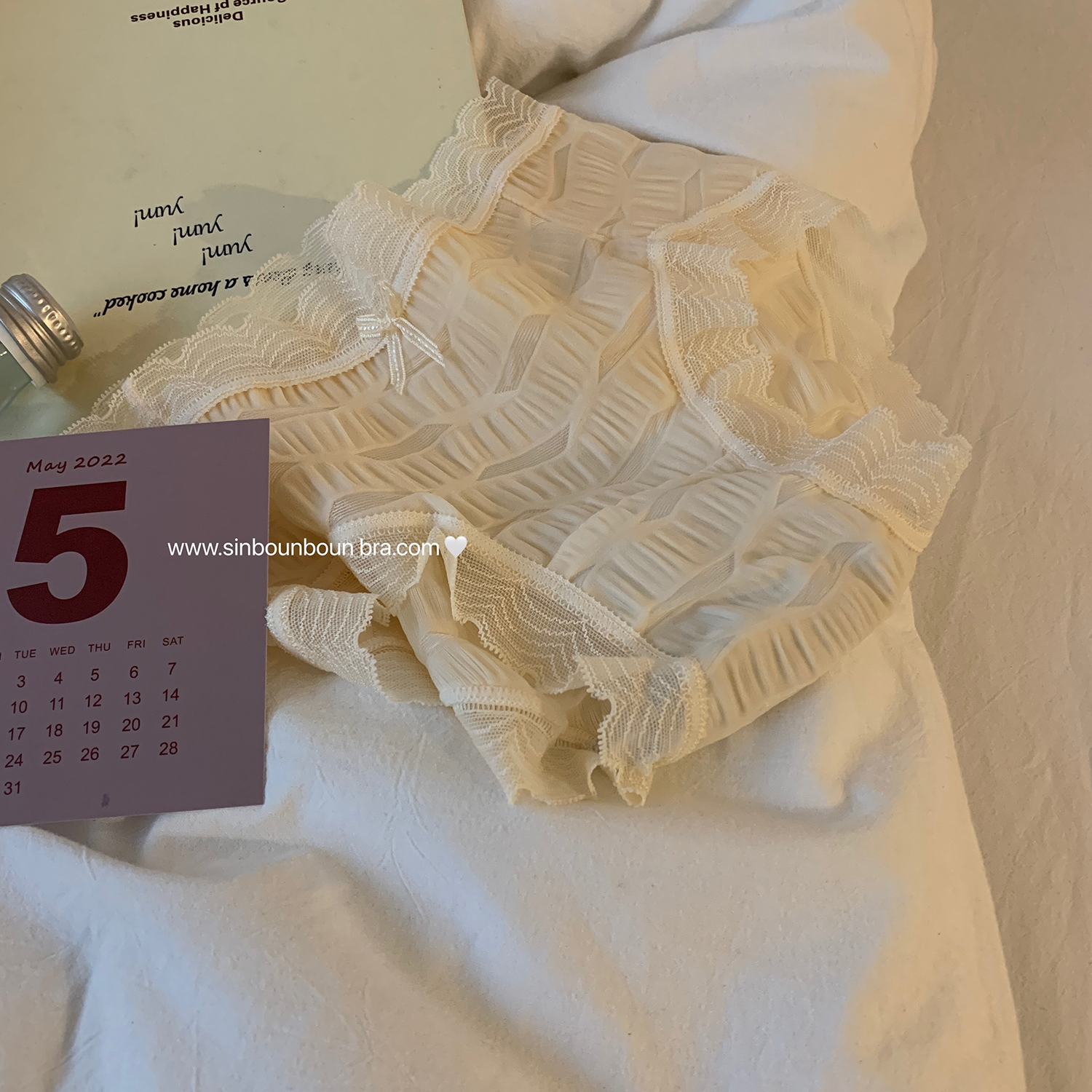 Xinbang help Bra girl lace edge pleated solid color mid-rise panties women comfort breathable cotton crotch briefs