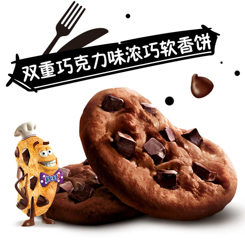 Funny Lots Box Loaded Double Chocolate Taste 80g Soft Chic Crisp Big Chunks Cookies Casual Children Snacks