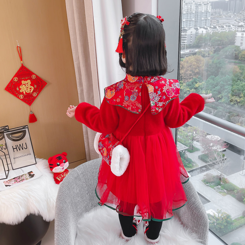 New Year's clothing girls Hanfu winter clothing Chinese style festive princess skirt children's suit cheongsam skirt performance clothing Tang suit Western style