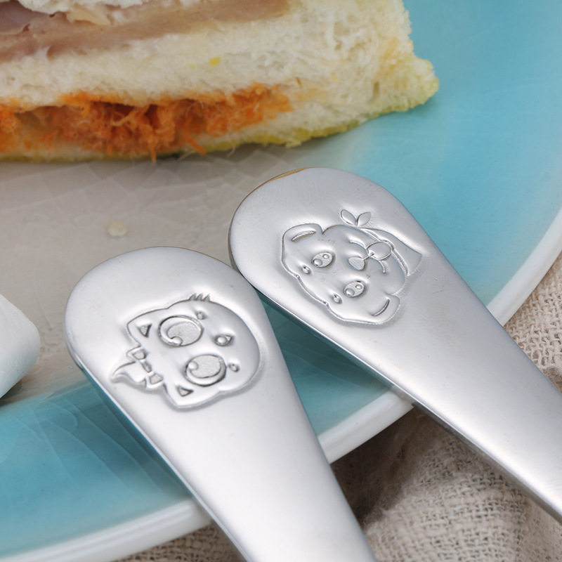 304 Stainless Steel Spoon Children Crooked Mouth Spoon Cartoon Training Baby Dining Spoon Cute Eating Cutlery