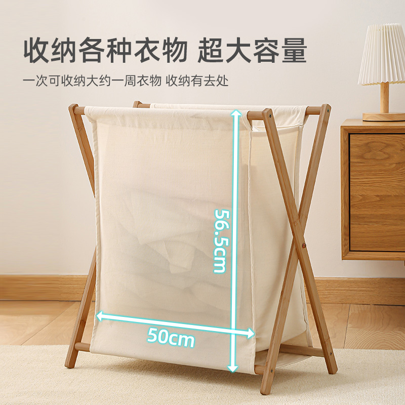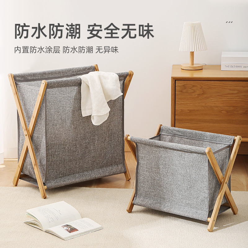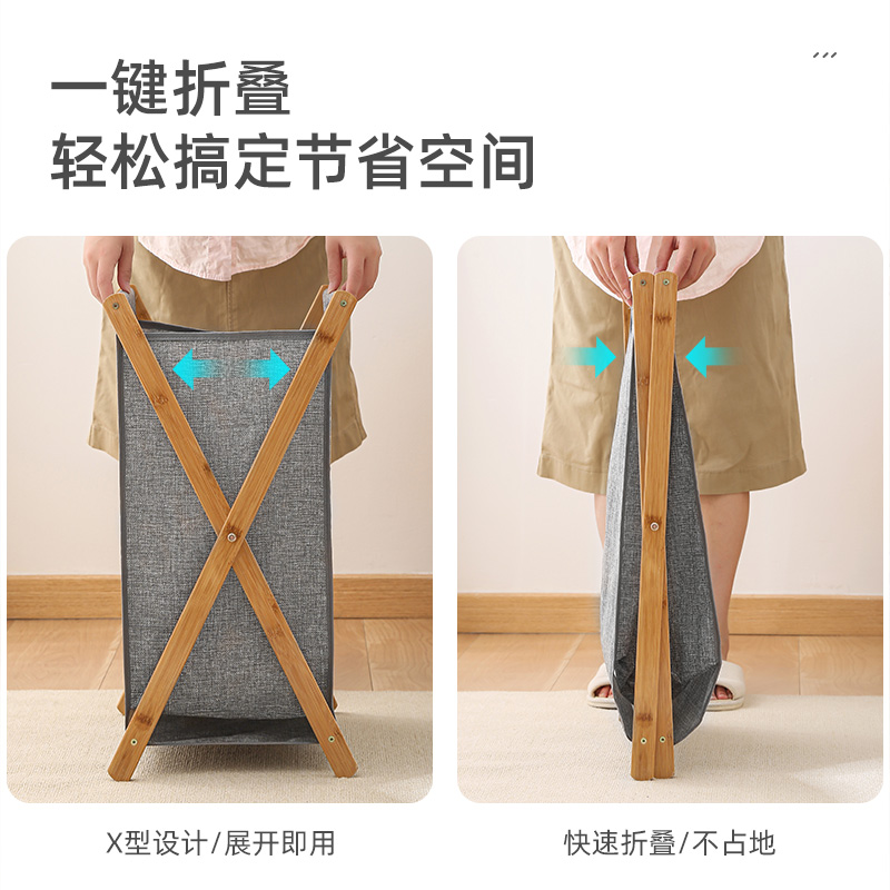 X1397 Folds of the bamboo and wood dirty clothes basket