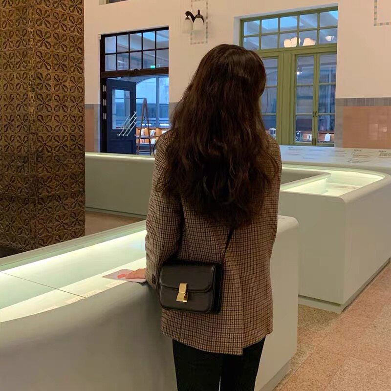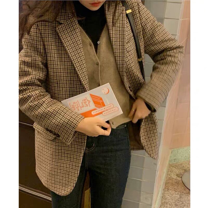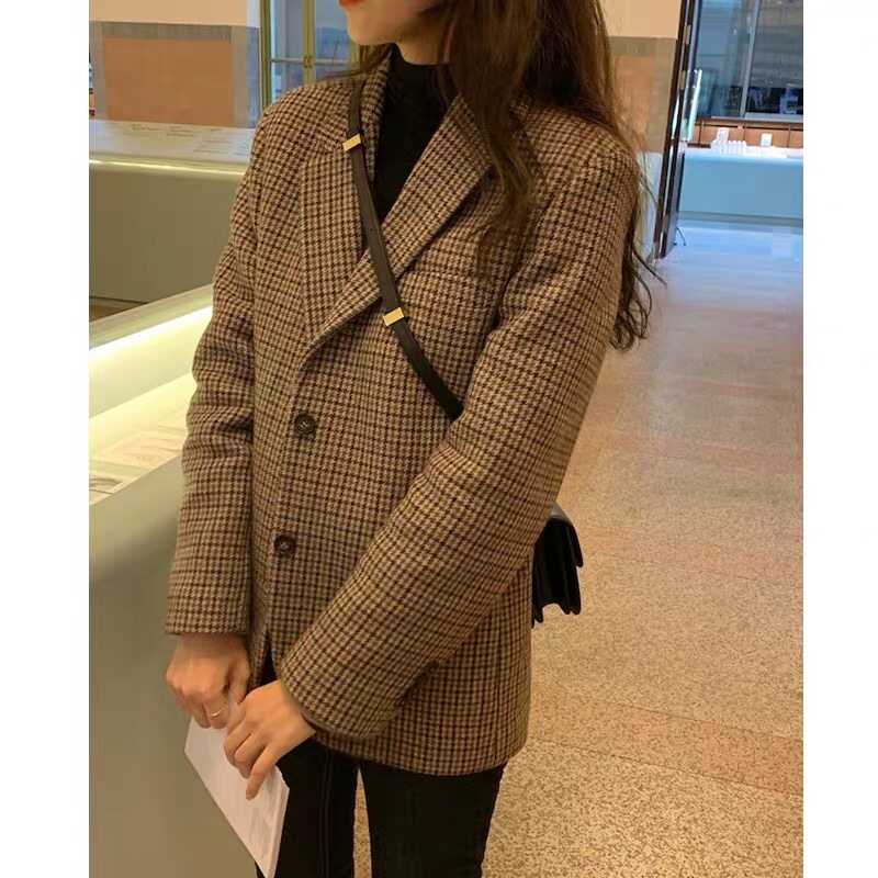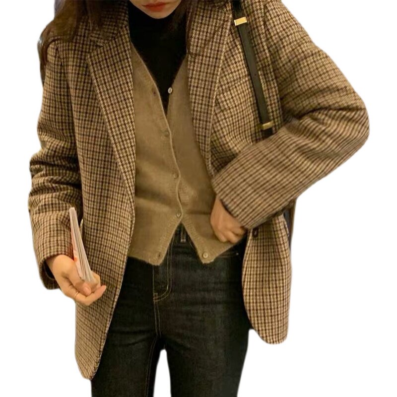 2022 autumn winter new hairy little suit jacket woman casual thickened small Inron wind retro plaid western suit