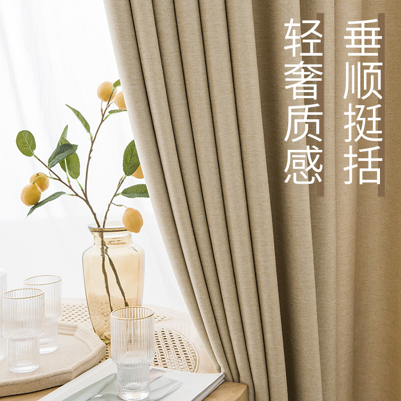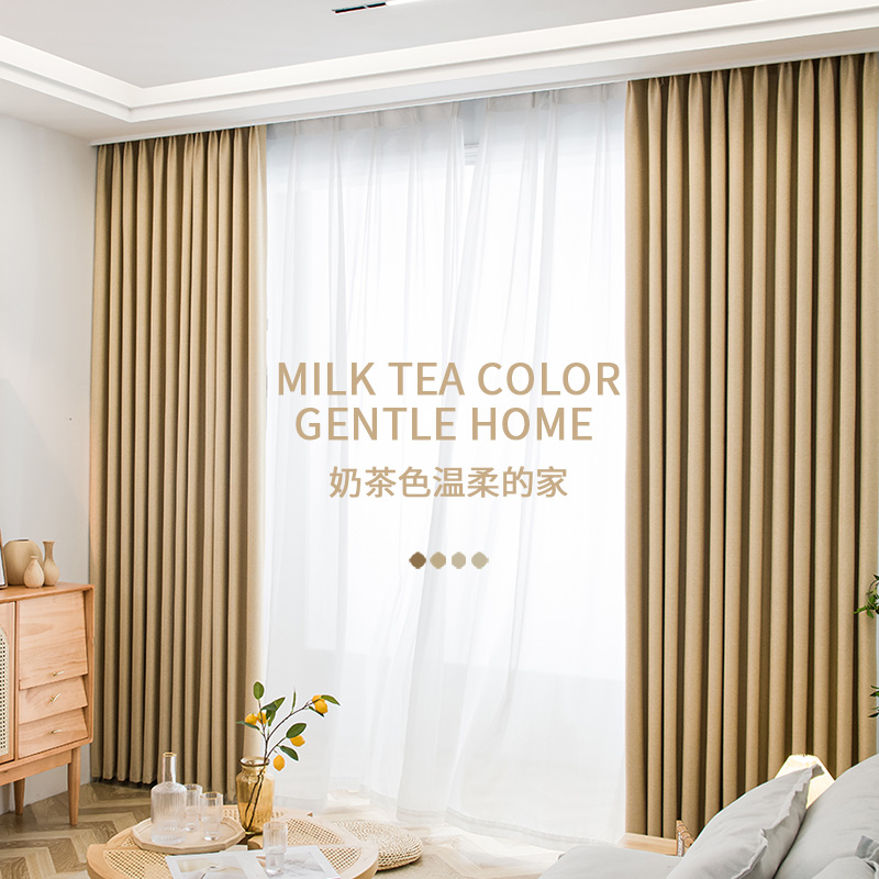 Curtain Shading 2021 New Living Room Bedroom Thickening Modern Minima Light Lavish Milk Tea Color Fabric Custom Finished Product