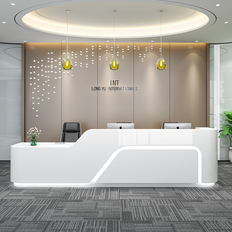 Company Front Desk Front Desk Painting Simply Modern Curved Hotel Counter Beauty Bar Cabinet White