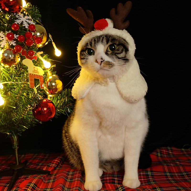 (Xiaoshan Fat) Pet Christmas Decorative Cat Hat Cloak Cloak Antler Dog Cat Set
