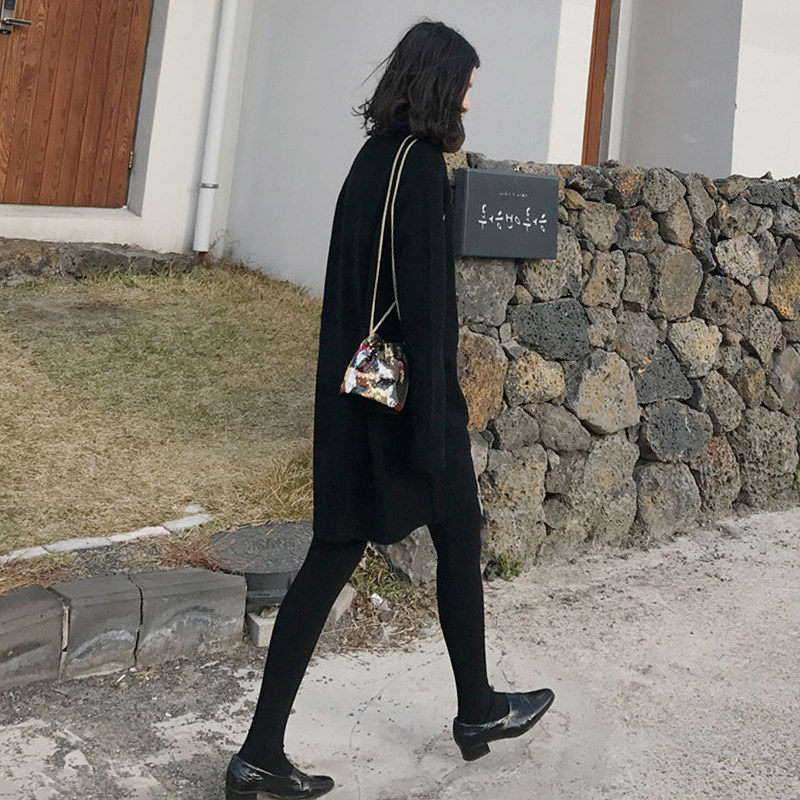 2022 new sweater skirt with bottom layer black knitted French dress early autumn high-end goddess fan