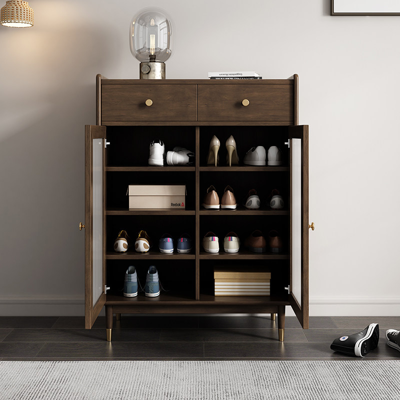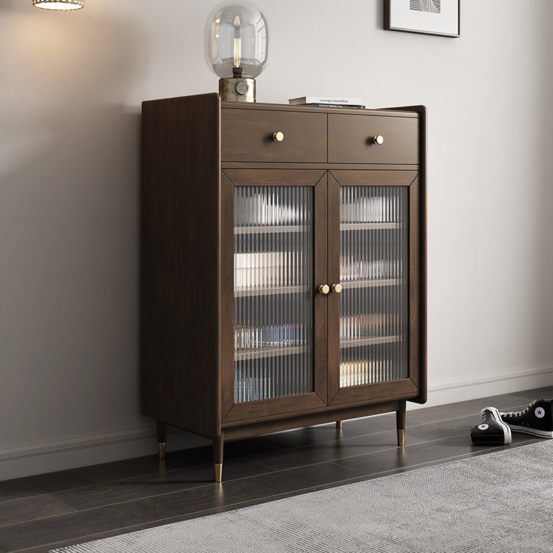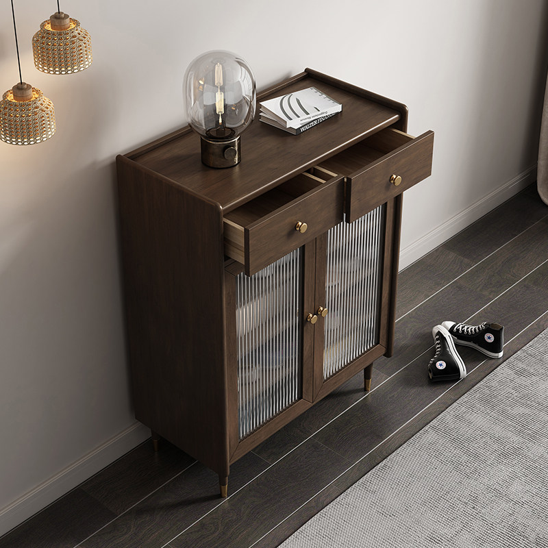 Retro wabi-sabi wind solid wood shoe cabinet home door Nordic small apartment middle-aged boxwood entry porch storage cabinet