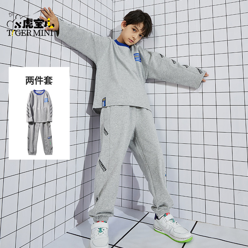 Small Tiger Treasure's flagship store Deformed Diamond Joint Boy Leisure Suit 2022 Spring Autumn New Children Pure Cotton Tide