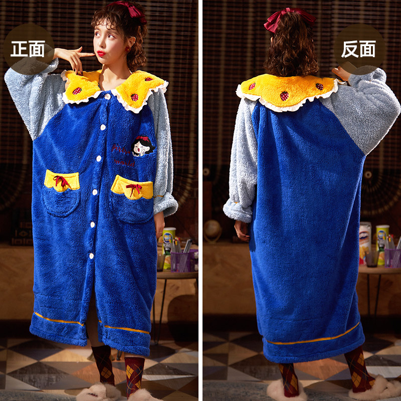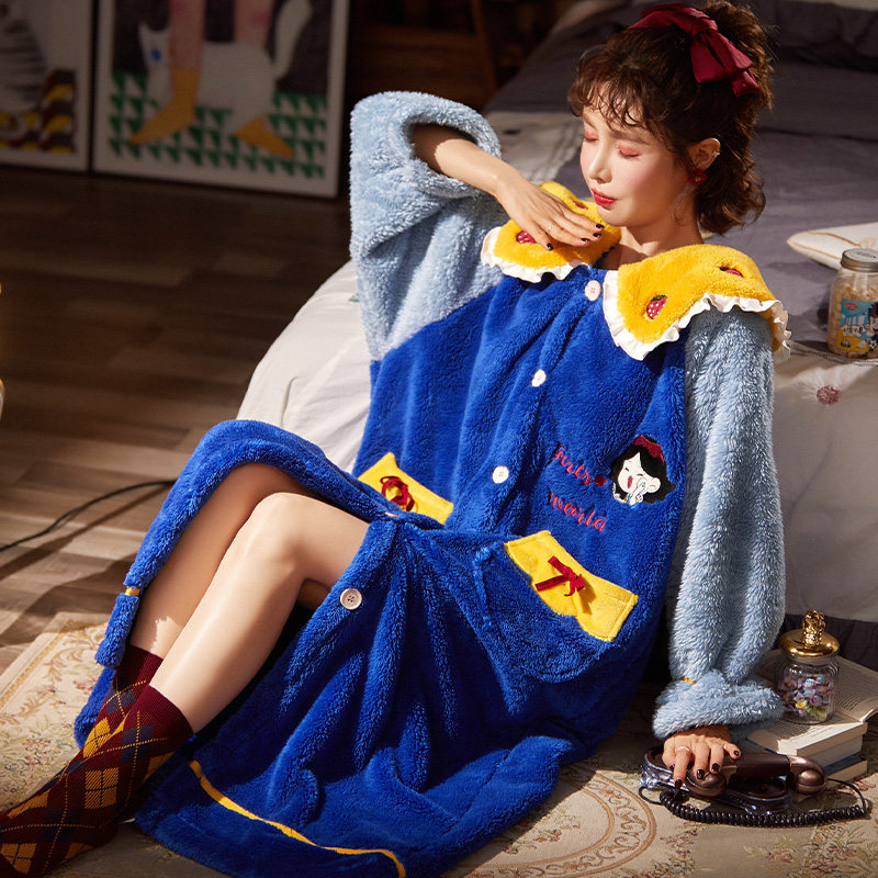 South Pole doll collar pyjamas Coral Suede Thickening Warm Sleeping Robe Skirt Korean version Cartoon Princess Wind Home Conserved Winter