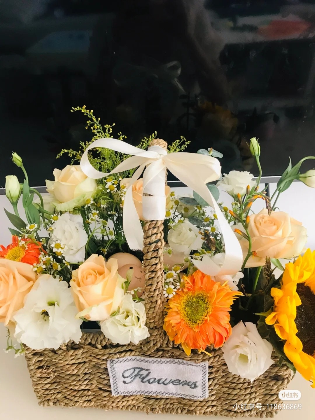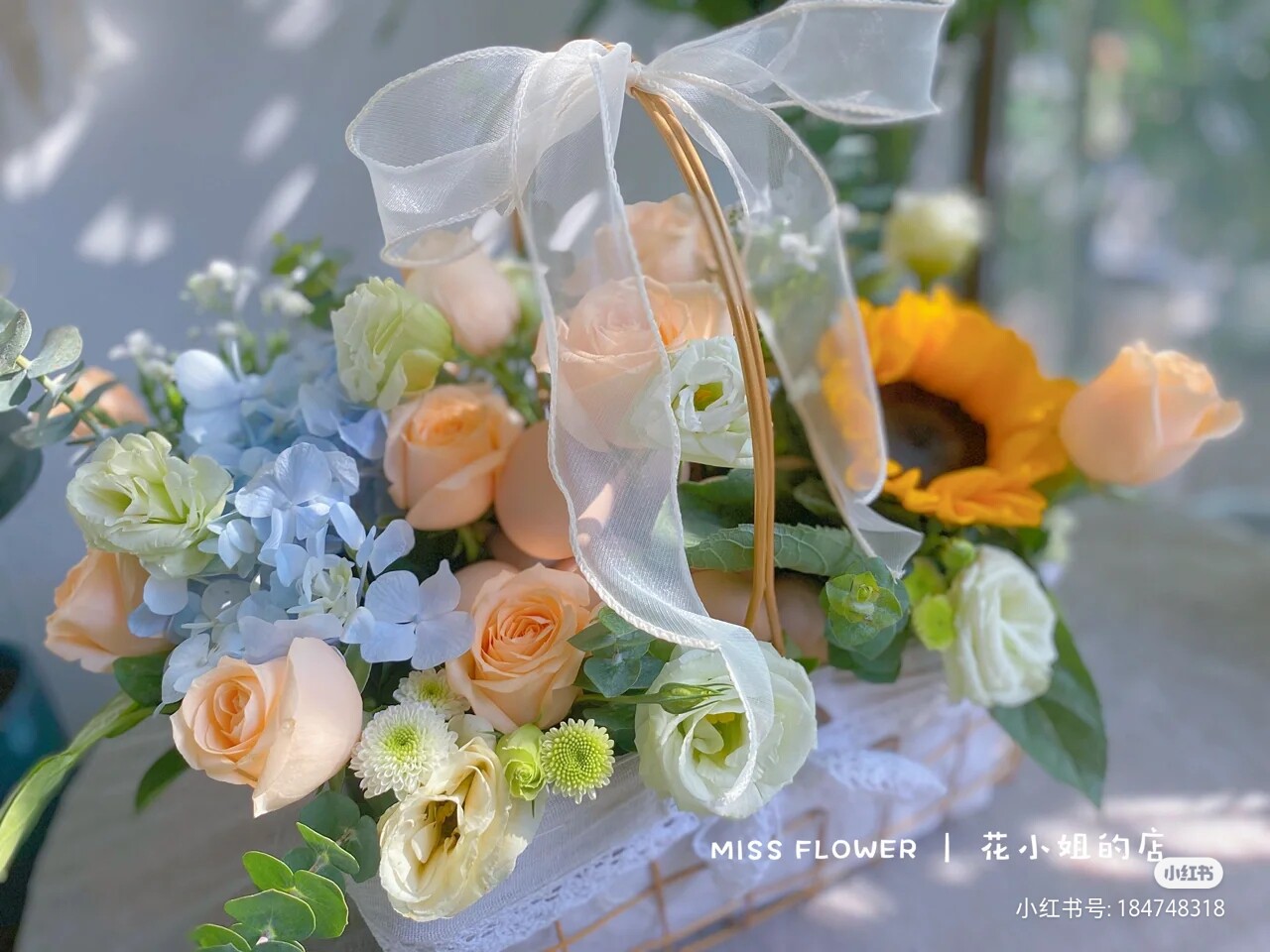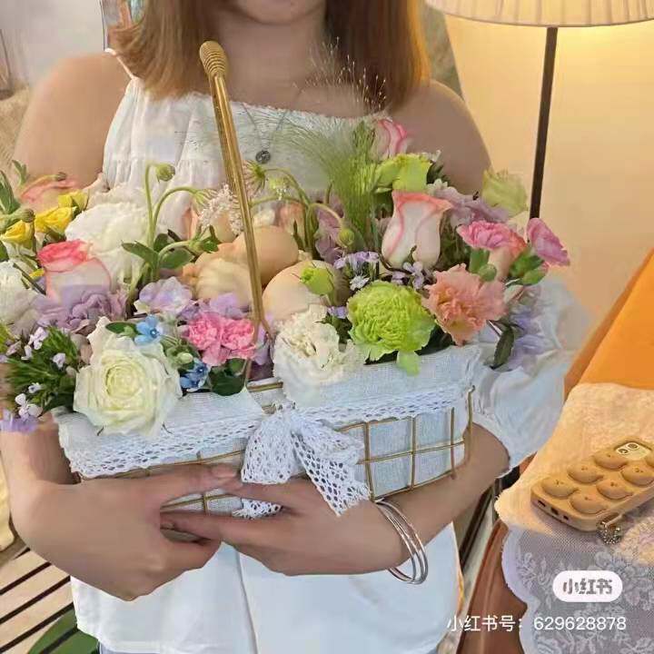 Hand Flowers Blue Flowers Flower Arrangement Eggs Basket Full Moon Gift Vine Braiding Woven Outdoor Fruit Picnic Basket Containing Basket-Taobao