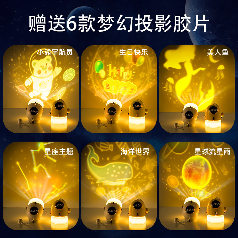 Spaceship Starry Sky Projector Clock Small Night Light Bedroom Bedside Breastfeeding Night Hand Light Soft Light Atmosphere Children's Room